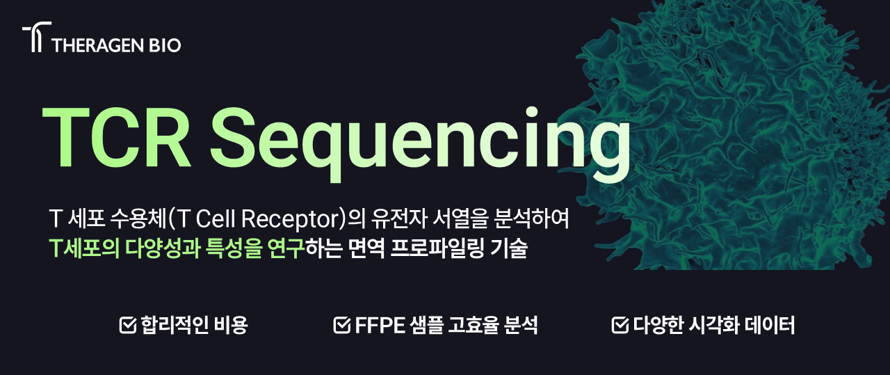 테라젠바이오의 TCR Sequencing은 자체 개발한 실험 Assay와 분석 파이프라인을 기반으로,