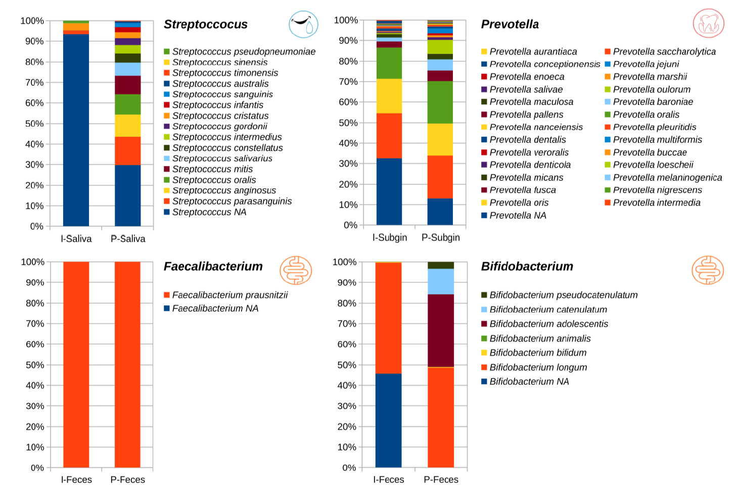 (I: 16S V3-V4, P: 16S Full Length)