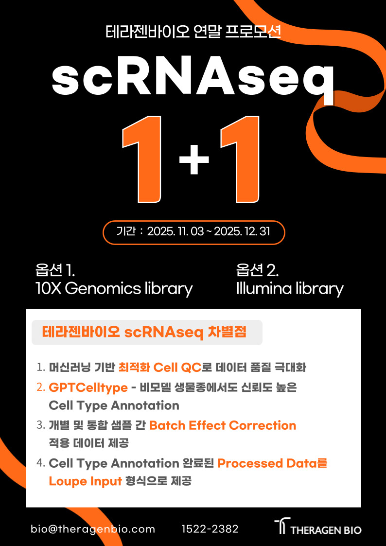 (AD) [테라젠바이오 프로모션] scRNA sequencing 1+1 프로모션!